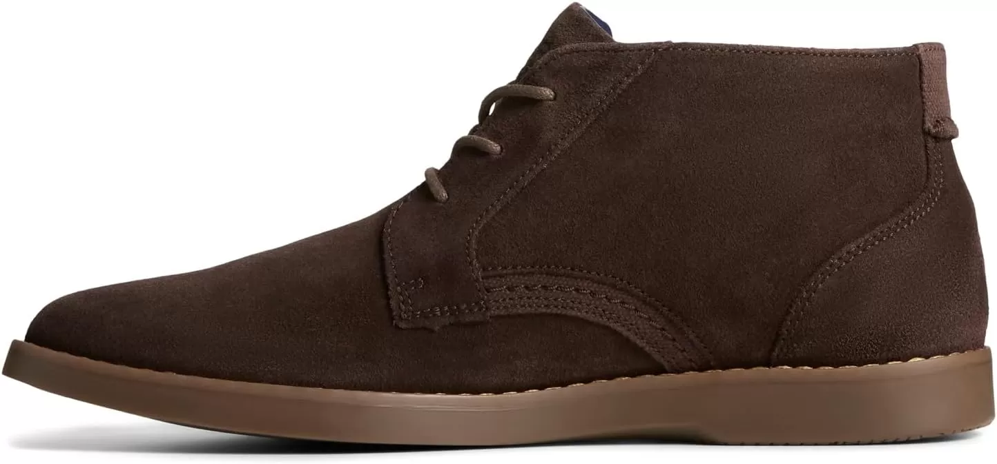Men's Sperry, Newman Chukka Boot. These chukka boots by Sperry bring a sleek and modern feel to one of their all-time classic styles. Crafted from genuine leather uppers and featuring decorative stitching, a nautical printed lining with a stitched welt detail, these kick arounds are bound to keep you looking your stylish best. Genuine leather upper with a nautical printed lining and stitched welt detailLace up closure for a secure fit with wax cotton lacesFull length EVA footbed with a Memory Foam cushion pod in the heel Molded Wave-Siping non-marking rubber outsole for added traction